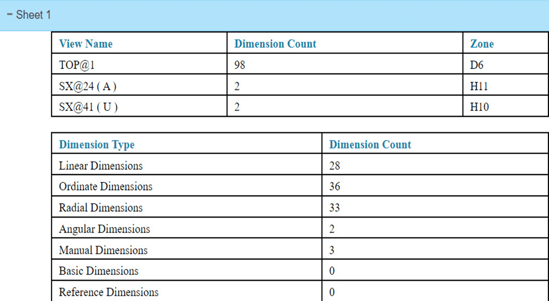 - Sheet-wise and type-wise dimension summaries.